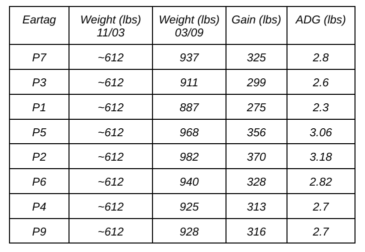 The heifers were healthier, grew at a greater rate, and were easier to manage. Their bloom, muscle development, and body condition was far superior than other calves grown in similar conditions. Below are the numbers reflecting the calves in this group.